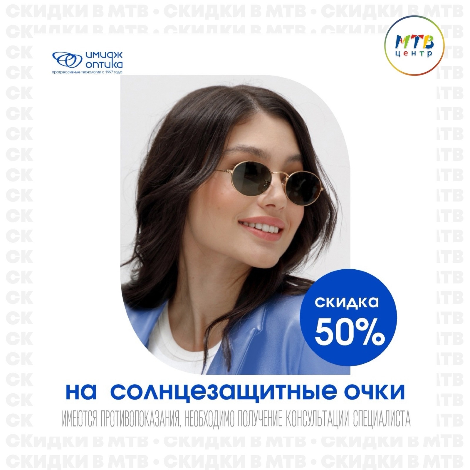 До конца апреля в сети салонов «Имидж-Оптика» (1 этаж МТВ Центра) как раз действуют скидки до 50% на солнцезащитные очки!